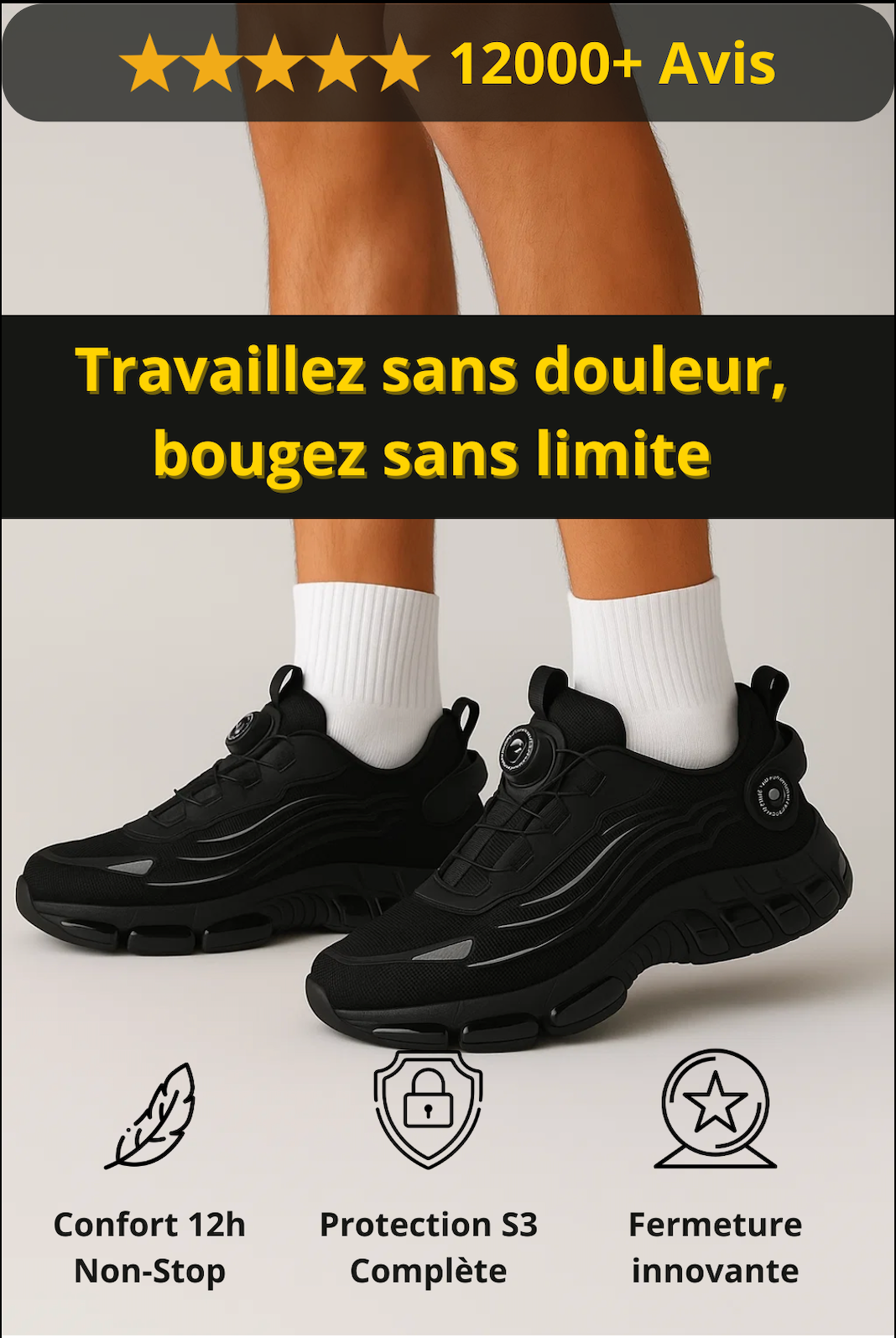 Fini les douleurs : légèreté, amorti et maintien pour tenir 12h sans souffrir.