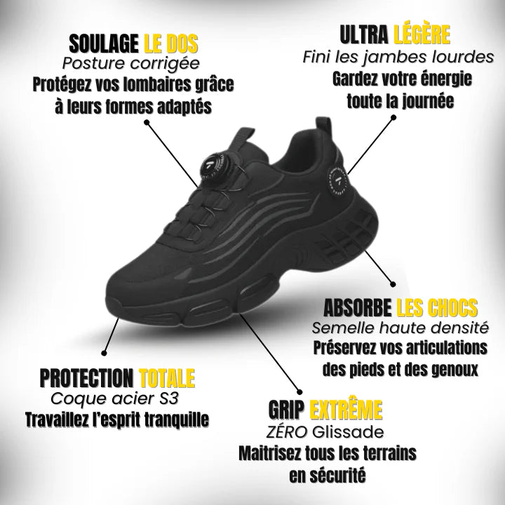 Travaille dur, sans risque : tes chaussures encaissent tout.