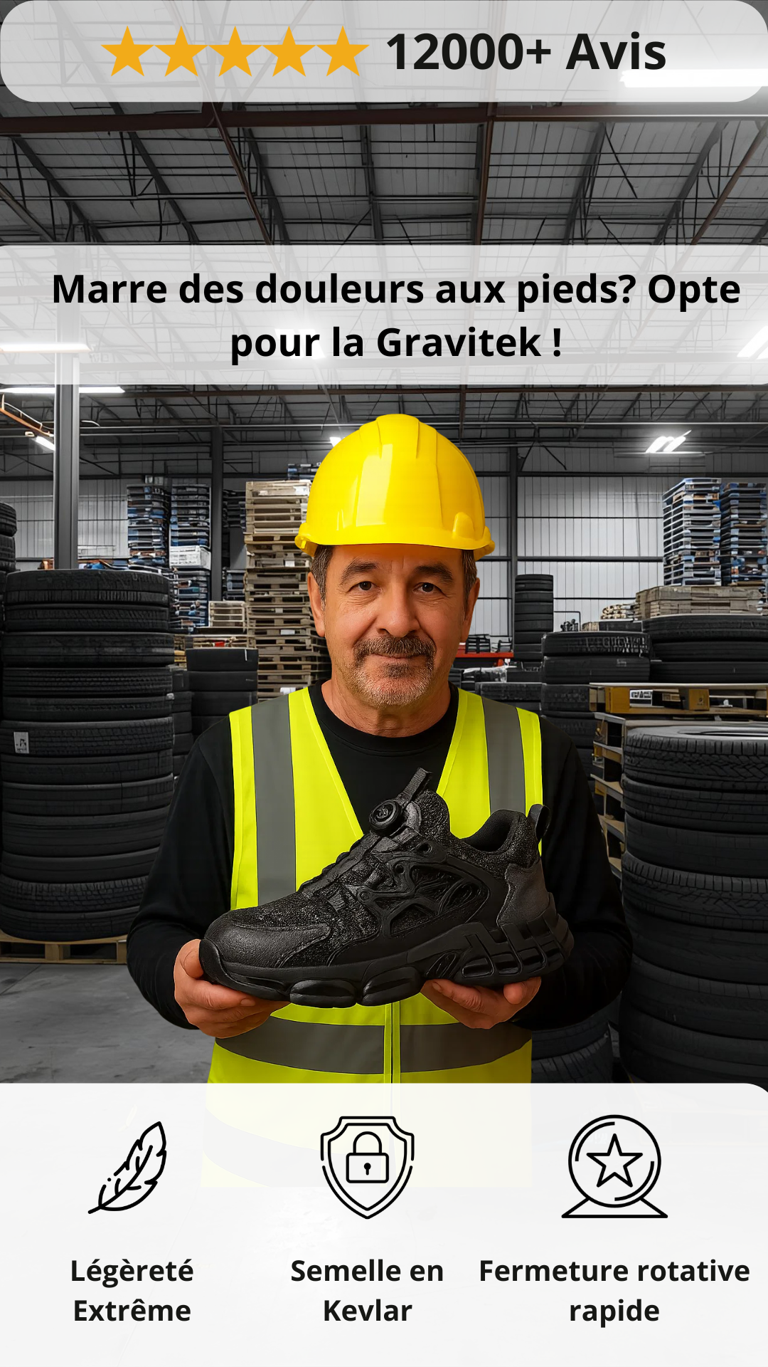 GRAVITEK est synonyme de chaussures de sécurité modernes qui non seulement protègent, mais facilitent également le quotidien. Notre ambition : développer des chaussures de travail qui allient le confort des baskets à la sécurité des équipements professionnels classiques, pour une utilisation sur les chantiers, dans les ateliers ou lors des interventions de montage.